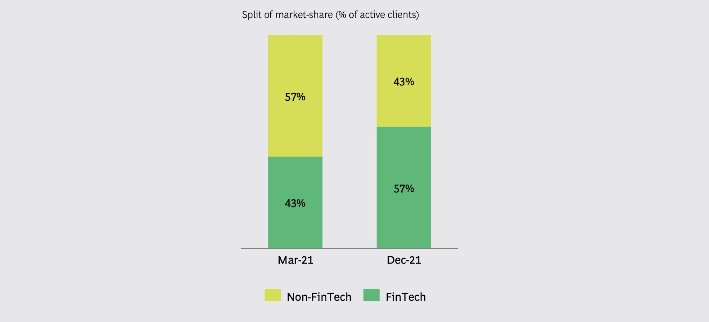 仲介市場におけるフィンテックの市場シェア比較(BCG)