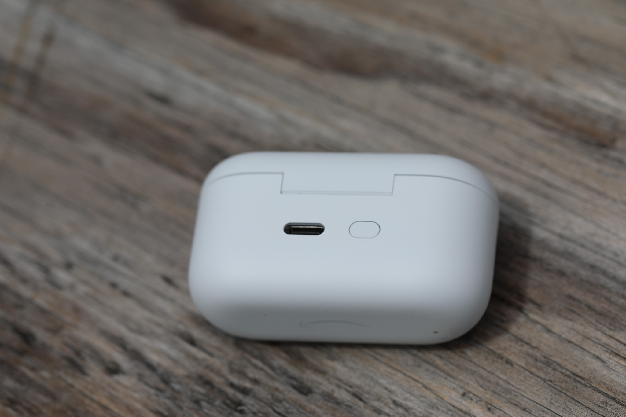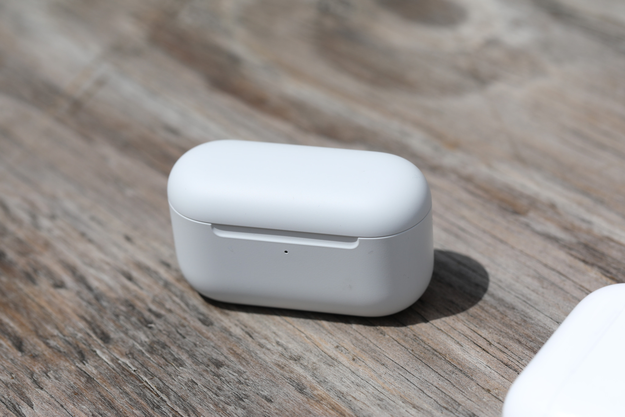 ケースは長めで、手触りは少し安っぽく感じる。形状が違うだけに、縦にまっすぐ収まるというメリットもある。このため充電ポート(USB-C)は、底面ではなくケースの背面に位置している。ワイヤレス充電ケースのオプションもあるが、20ドル(約2180円)プラスになる。ケースの上にはAmazonの矢印のロゴが施されているが(同社のブランディング力はあまり高くないかもしれない)、その印象はさりげなく最小限に抑えられている。イヤフォンにも目立たない程度に矢印がついている。