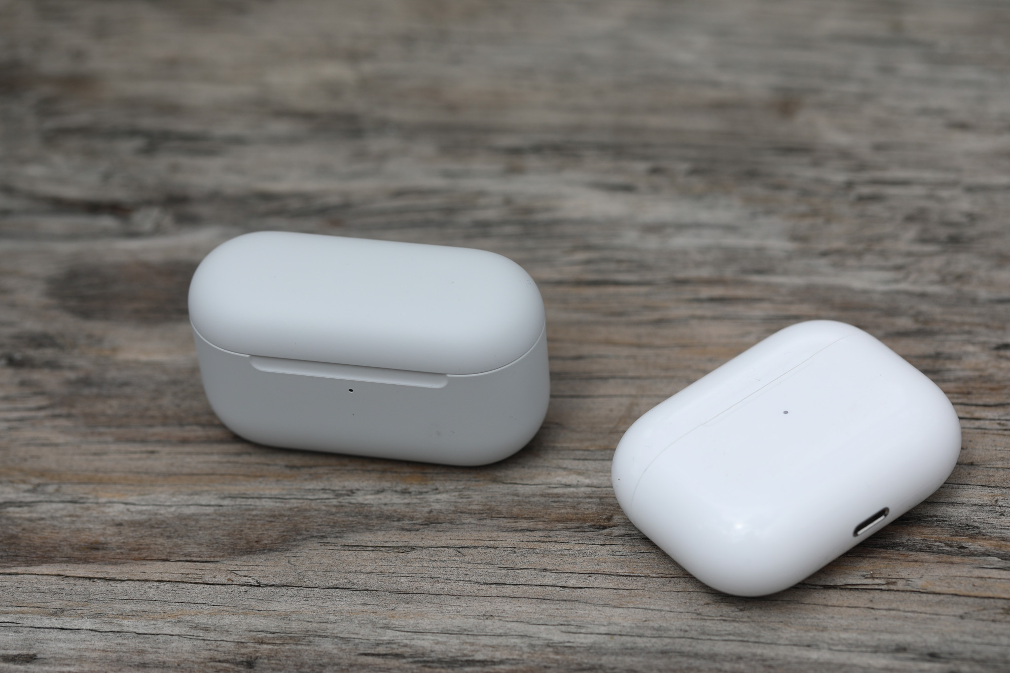 Amazonから届いたのは「グレイシャーホワイト」で、実際には薄いグレーだ。これもAirPodsとの違いが顕著な点だろう。Appleのデザインとの差別化を図る巧妙な手法なのだろうか?何とも言えない。