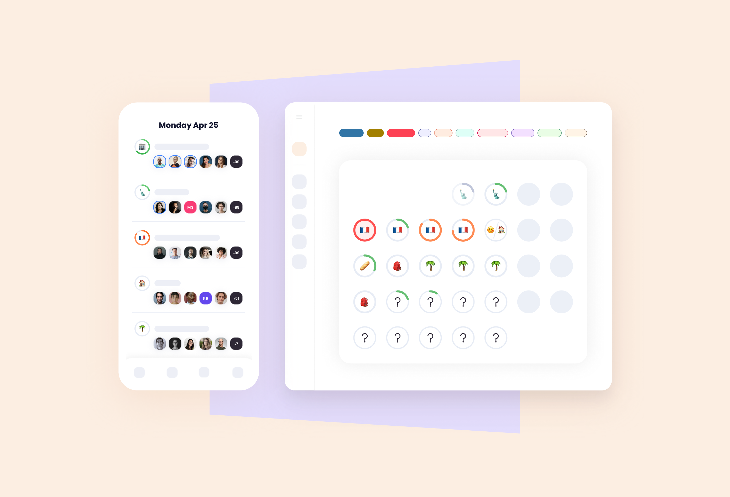 アプリを開くと、シンプルなカレンダービューが表示される。それぞれの日ごとに、オフィスに来ている人、自宅で仕事をしている人などのグループごとに分けられたチームメンバーを見ることができる。