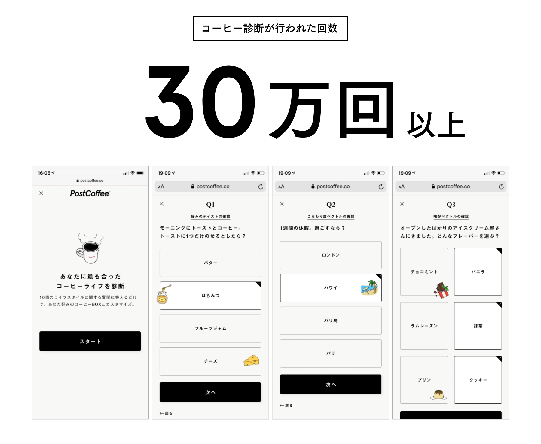 PostCoffeeは、2020年2月にローンチしたサービス。ベータ版からの会員数は約25倍に増え、オンラインでできる「コーヒー診断」の診断回数は30万回を超えた。2021年6月には、Instagramの「#PostCoffee」タグのついた投稿が1万件を突破している。