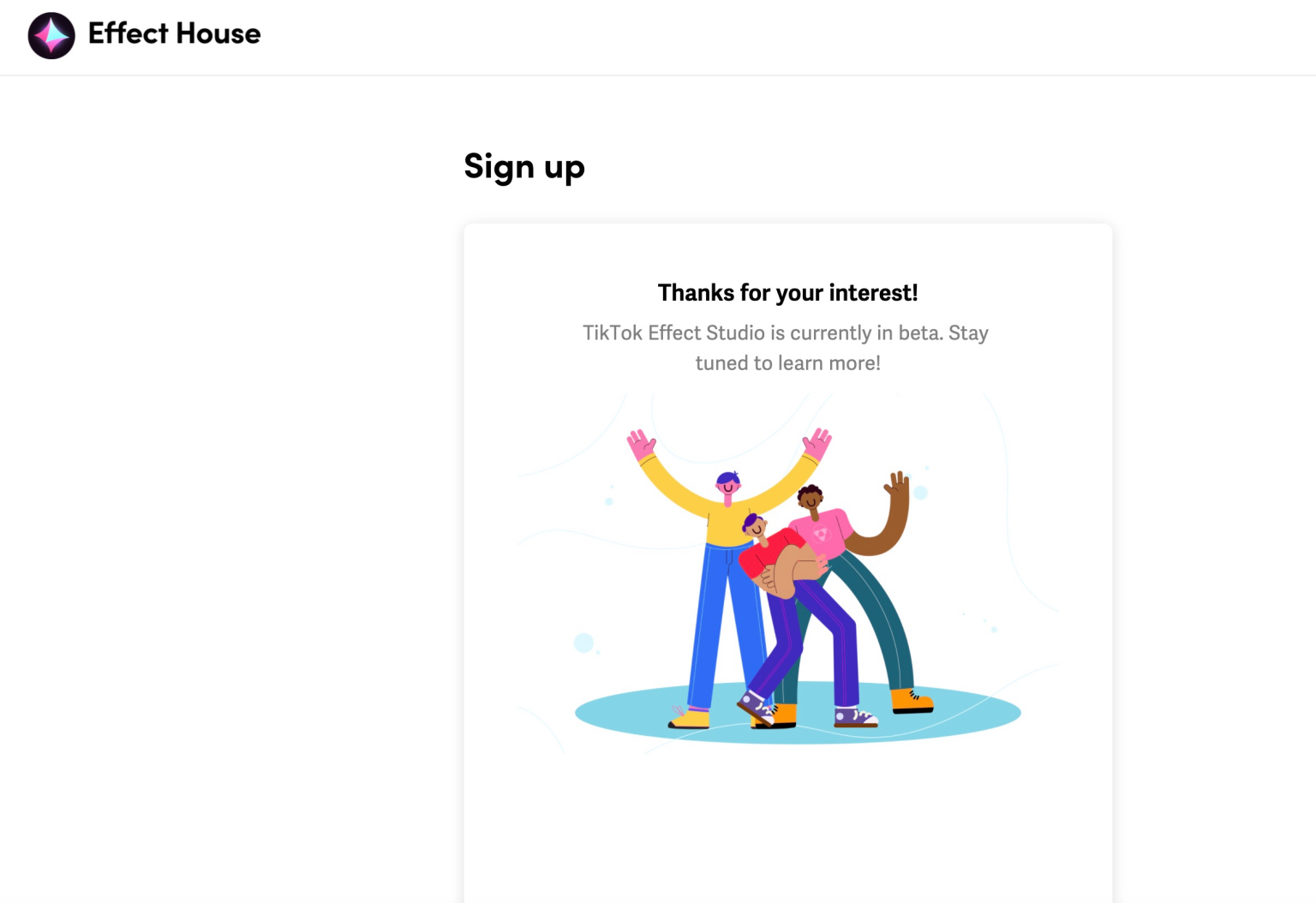 「Effect House」と名付けられた新しいウェブサイトで、TikTokは関心を持っているデベロッパーにEffect Studioへの早期アクセスを申し込むよう呼びかけている。