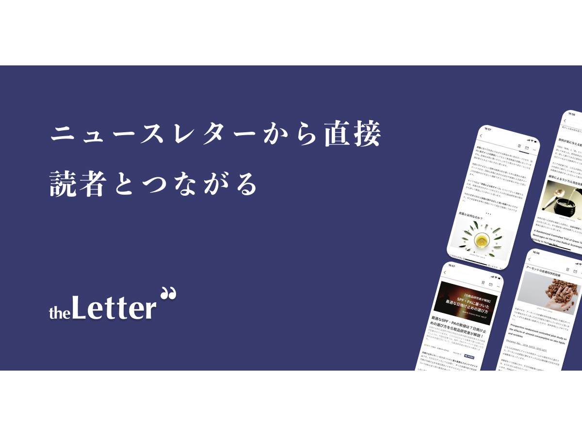 theLetterは、集客と収益化に最適化されたニュースレター配信を容易にするプロダクトと、書き手が集まるコミュニティ運営により書き手の収益向上させるというサービス。ジャーナリストやライターが読み手からの直接収益を得ることで、既存媒体への寄稿・執筆以外の方法で情報発信を行ない、記事単価アップを果たすことを目的としている。