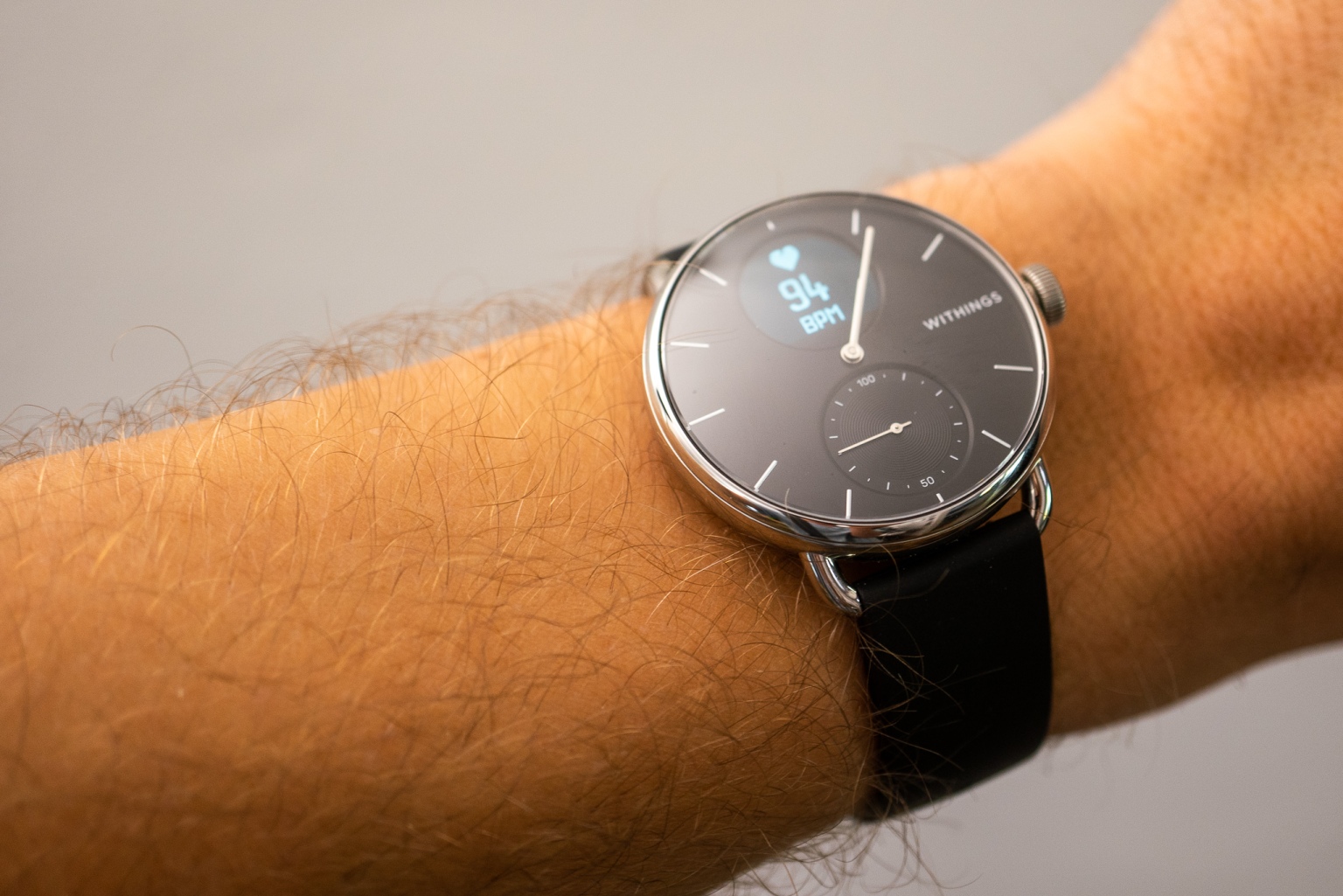 ScanWatchには2つのサイズがある。これは38ミリ版で「筋トレやってる?」と聞かれるくらいひ弱な手首の筆者にはちょうどよい(画像クレジット:Haje Kamps for TechCrunch)