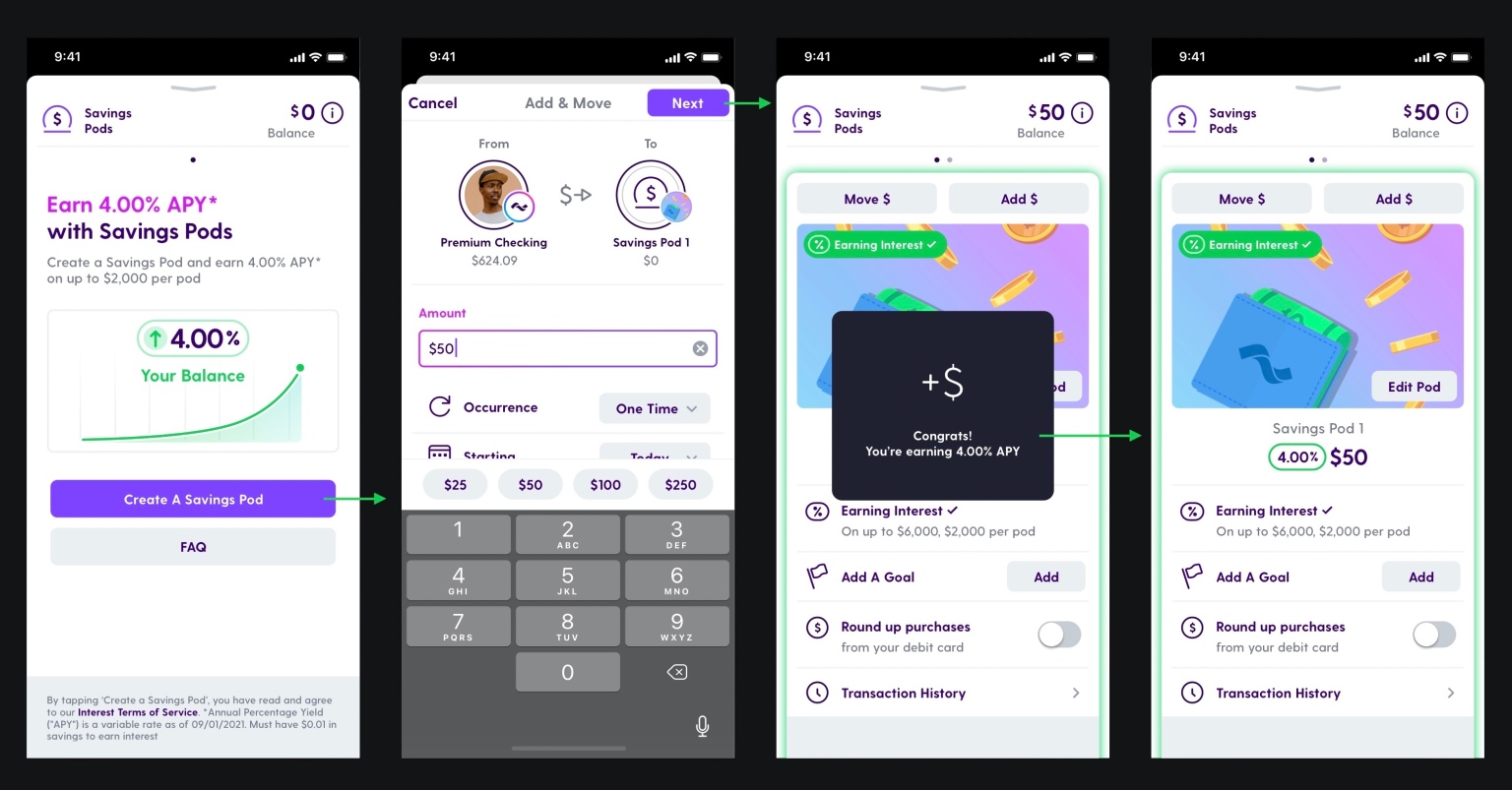 ただし、このCurrentの商品には、総額6000ドルまでの預金をSavings Pod(貯金ポッド)に分散して貯めなければならないという難点がある。APYは1つのポッドにつき2000ドル(約23万円)までしか得られない。そのため、大きな残高を貯めたい人よりも、貯金を始めたばかりで、お金をいろいろなグループに分けたいと考えている顧客にとって、より有効な選択肢となる。なお、この貯金ポッドは、無料ユーザーは1つしか作成できないが、有料ユーザーは3つ作成できる。